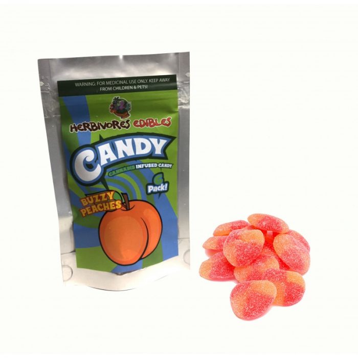 Herbivores Edibles – Buzzy Peaches 150MG are Cannabis infused peach flavored gummy candy.
