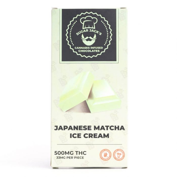 Ingredients: Sugar, Cocoa Butter, Whole Milk Powder, Japanese Matcha Powder, Soy Lecithin, THC Tincture, Natural Vanilla Flavour