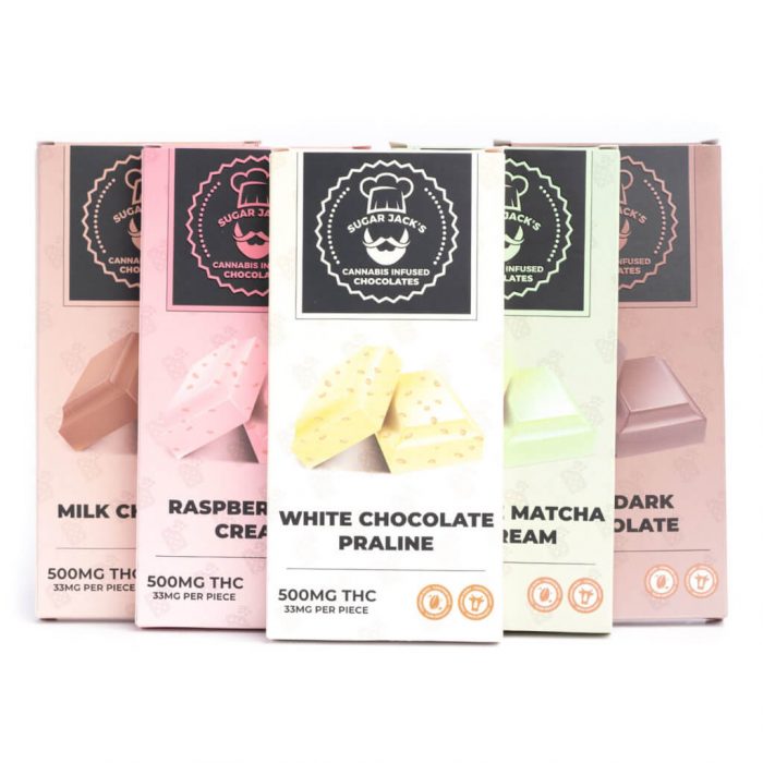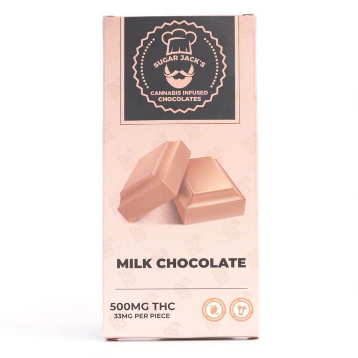 500mg THC Chocolate Bars by Sugar Jack’s contains 15 pieces of Belgian’s finest chocolate infused with 33mg of our filtered, house-made THC tincture.