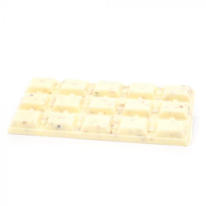 Our medicated White Chocolate Praline treats will drive you nuts for more. Creamy white chocolate topped with honey-roasted hazelnut pralines to give it that extra crunch. Each chocolate bar contains 15 pieces of Belgian’s finest chocolate infused with 33mg of our filtered, house-made THC tincture.